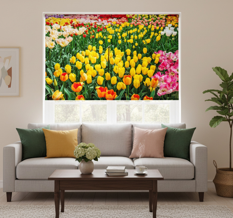 Rolgordijn woonkamer tulpen