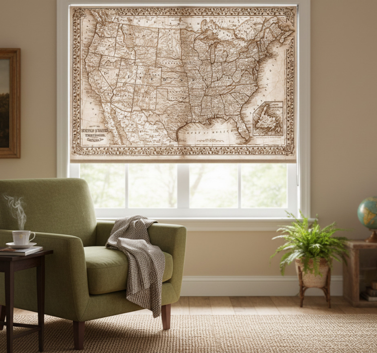 Rolgordijn woonkamer vintage kaart noord-amerika