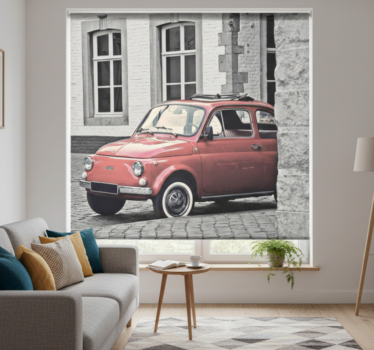 Breng een vleugje retro charme in uw woonkamer met ons rolgordijn woonkamer vintage oude fiat 500. Dit unieke ontwerp toont een prachtig grafisch motief van de iconische Fiat 500, waardoor het een echte blikvanger wordt in uw interieur. De combinatie van vintage elementen met moderne functionaliteit maakt dit rolgordijn niet alleen esthetisch aantrekkelijk, maar ook praktisch. Het biedt de perfecte balans tussen stijl en gebruiksgemak, waardoor uw ruimte een warme en uitnodigende uitstraling krijgt.