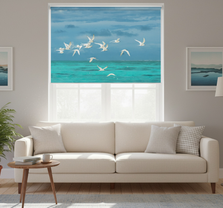 Rolgordijn woonkamer vogels in de lucht