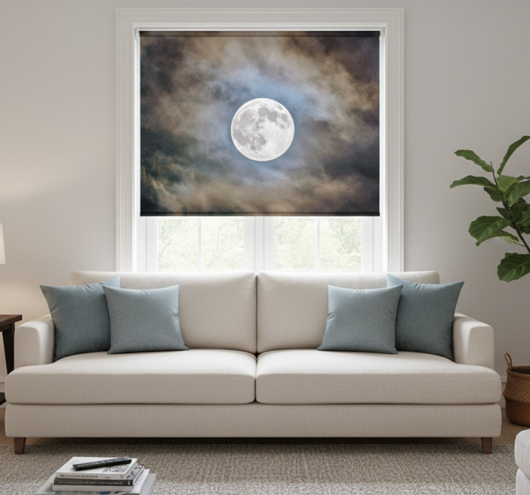 Rolgordijn woonkamer volle maan nacht