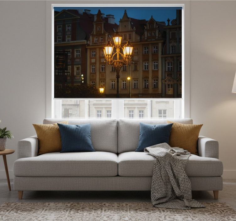 Rolgordijn woonkamer wrocław bij zonsondergang