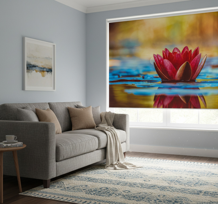 Referentienummer: E9383Rolgordijn woonkamer zen weerspiegelde lotusbloem