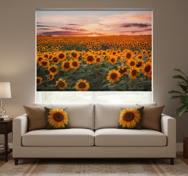 Een rolgordijn woonkamer zonnebloem zonsondergang rolgordijn woonkamer is niet alleen praktisch, maar ook een prachtig decoratief element voor uw interieur. Het voegt kleur en karakter toe aan uw ruimte, waardoor het een warmere en uitnodigende uitstraling krijgt. Bovendien biedt het de mogelijkheid om de lichtinval te reguleren, zodat u altijd de juiste sfeer kunt creëren. Dit rolgordijn is perfect voor het accentueren van uw woonkamer en zorgt ervoor dat u zich in een oase van rust waant!