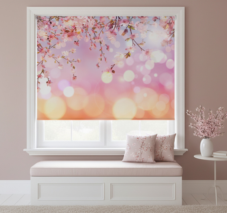 Roze rolgordijn kersenbloesem 3d