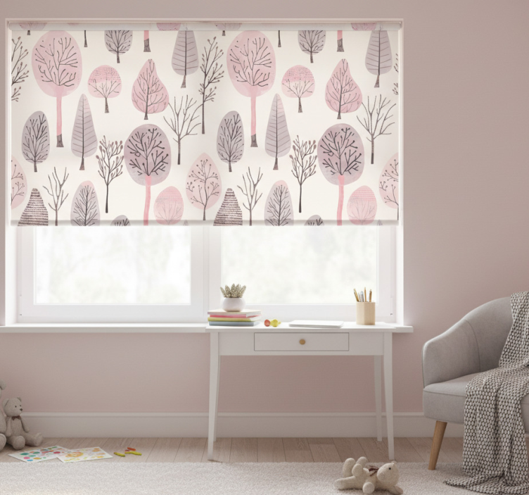 Roze rolgordijn nordic bomen