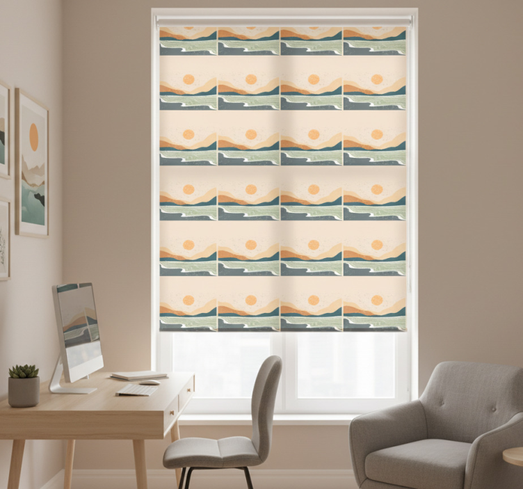 Brede zoekwoorden gebruikt: Thuis kantoor raambekleding, abstract zonsondergang bergen, raambekleding, rolgordijn, decoratie, privacy, zonwering, interieur.