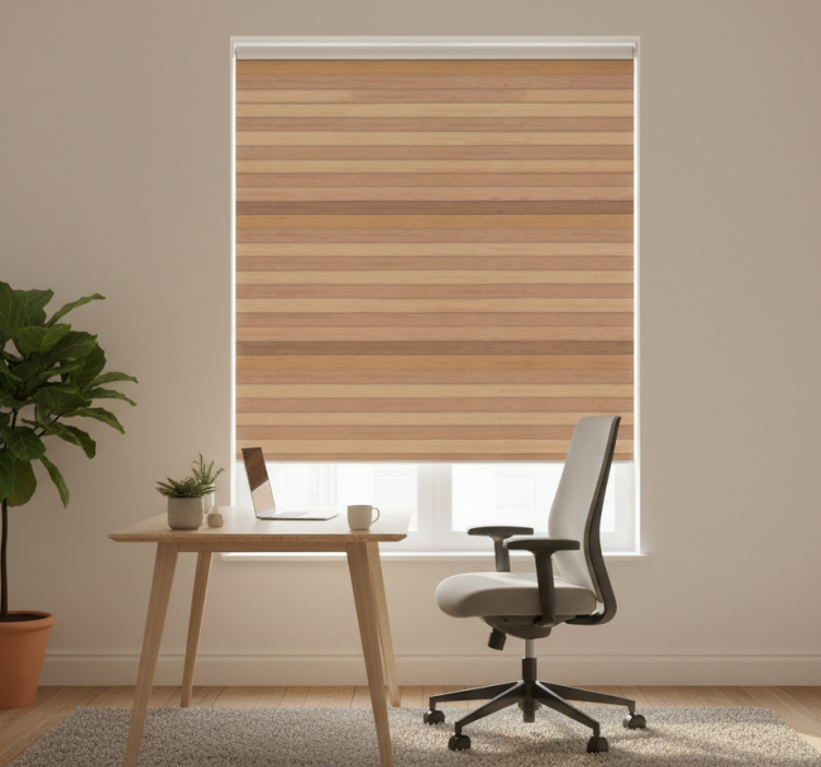 Transformeer uw thuis kantoor in een oase van stijl en comfort met onze thuis kantoor raambekleding elegante rustieke planken. Het ontwerp kenmerkt zich door een verfijnde combinatie van rustieke elementen en moderne esthetiek, waardoor het een perfecte aanvulling is op elke werkomgeving. De warme tinten en natuurlijke texturen creëren een uitnodigende sfeer, terwijl de functionaliteit van het rolgordijn zorgt voor een ideale balans tussen lichtinval en privacy. Laat het zonlicht binnenvallen, maar behoud de controle over uw ruimte!