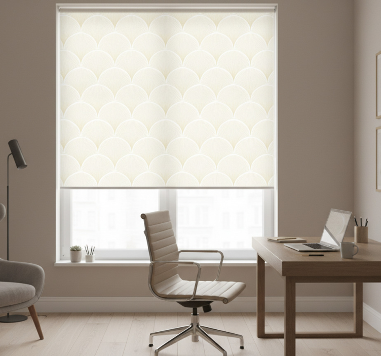 Het Thuis kantoor raambekleding ginkgo fan patroon brengt een unieke stijl in uw werkruimte met zijn elegante en grafische ontwerp. De ginkgo fan motieven creëren een harmonieuze sfeer die niet alleen visueel aantrekkelijk is, maar ook een gevoel van rust en creativiteit uitstraalt. Dit rolgordijn voegt een verfijnde touch toe aan uw interieur, terwijl het praktische voordelen biedt die uw thuis kantoor naar een hoger niveau tillen!