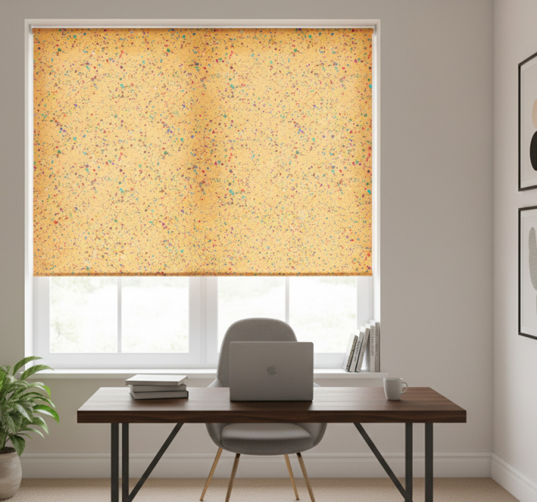 Breng een sprankje leven in uw werkomgeving met onze thuis kantoor raambekleding met kleurspetters. Dit unieke ontwerp combineert speelse kleuraccenten met een stijlvolle uitstraling, waardoor het perfect is voor elk thuis kantoor. De kleurspetters geven een vrolijke energie aan de ruimte, terwijl het strakke en moderne uiterlijk zorgt voor een professionele uitstraling. Dit rolgordijn is meer dan alleen een functioneel item; het is een statement dat de creativiteit en productiviteit bevordert!