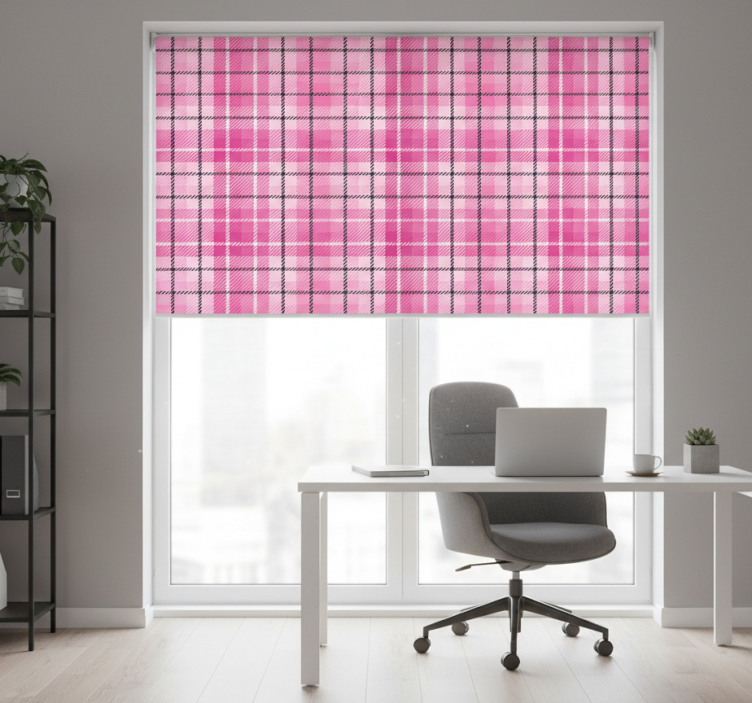Thuis kantoor raambekleding roze en zwarte tartan