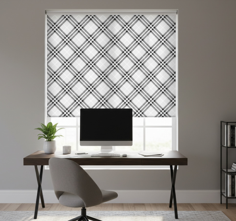 De Thuis kantoor raambekleding zwart-wit schotse tartan is een prachtig ontworpen rolgordijn dat een unieke grafische uitstraling biedt. Het stijlvolle tartanpatroon in zwart-wit voegt een vleugje elegantie toe aan uw werkruimte. Dit rolgordijn is niet alleen functioneel, maar ook een geweldige decoratieve aanvulling voor elk thuis kantoor. Het ontwerp is perfect voor diegenen die een moderne en toch klassieke uitstraling willen creëren, waardoor uw kantoor een inspirerende en professionele sfeer uitstraalt.