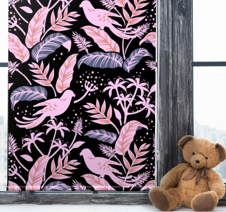 Breng een vleugje natuur in uw huis met ons Tropische vogelmotieven rolgordijn meer dieren. Dit prachtige ontwerp, met een betoverend patroon van vogels en bladeren in zachte roze tinten, geeft uw interieur een frisse en levendige uitstraling. De flora en fauna in dit rolgordijn creëren een harmonieus geheel dat elke ruimte tot leven brengt!