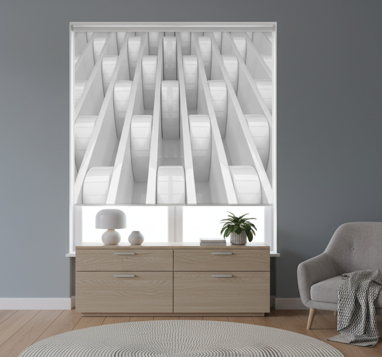 Wit rolgordijn met 3d geometrisch vormen ontwerp