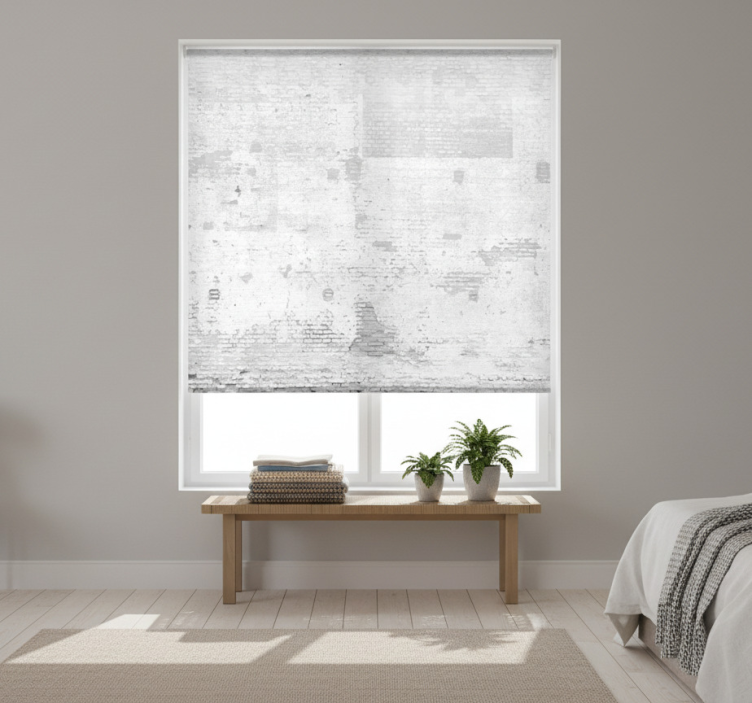 Wit rolgordijn voor oude witte muur