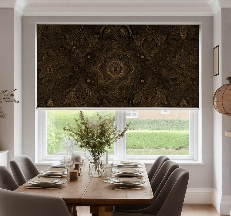 Een Zwart-gouden mandala eetkamer rolgordijn is niet alleen functioneel, maar ook een stijlvol accent in uw interieur. Het voegt karakter toe aan de ruimte en creëert een warme en uitnodigende sfeer. Door de unieke mandala-designs wordt de aandacht van uw gasten getrokken, waardoor uw eetkamer een echte blikvanger wordt. Dit rolgordijn biedt bovendien de mogelijkheid om de lichtinval te reguleren, wat de eetervaring nog aangenamer maakt!