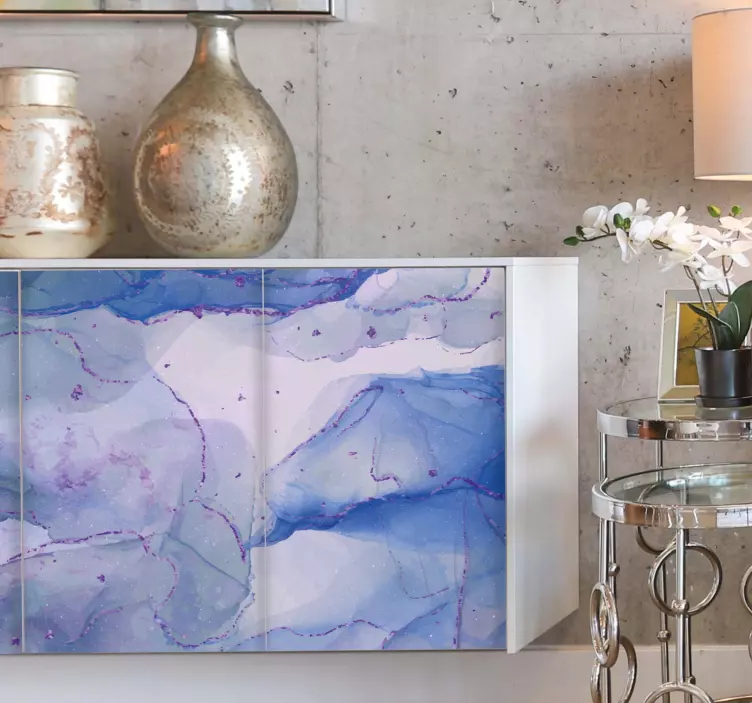 Transformeer uw ruimte met onze Abstracte muursticker vloeiend blauw patroon, een unieke combinatie van blauw, verf en textuur die een artistiek, kleurrijk en abstract gevoel uitstraalt. Dit ontwerp, geïnspireerd op vloeibare vormen, voegt een levendige en dynamische uitstraling toe aan elk meubilair in uw huis of kantoor.