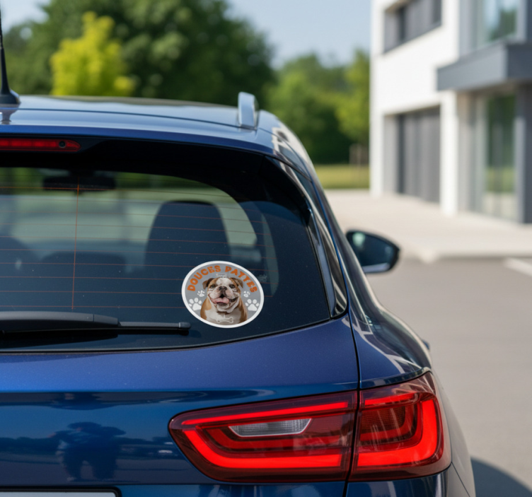 De autosticker douces pattes engelse bulldog autosticker is de perfecte manier om je auto te personaliseren en een unieke uitstraling te geven. Met deze sticker maak je niet alleen je voertuig opvallend, maar laat je ook je liefde voor Engelse bulldogs zien. Het is een eenvoudige en effectieve manier om je auto te versieren en tegelijkertijd je persoonlijkheid uit te drukken. Maak van je auto een echte blikvanger op de weg!