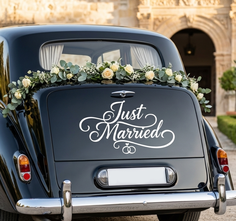 Autosticker handgeschreven "net getrouwd"
