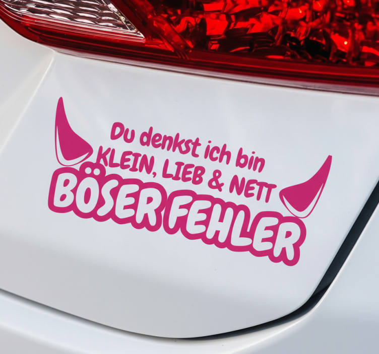 Het aanbrengen van de autosticker slechte fout roze duivel autosticker is een fluitje van een cent! Zorg ervoor dat het oppervlak schoon en droog is voordat u de sticker aanbrengt. Verwijder de achterkant en plaats de sticker voorzichtig op de gewenste plek. Wrijf met een spatel over de sticker om luchtbellen te verwijderen en een perfecte hechting te garanderen!
