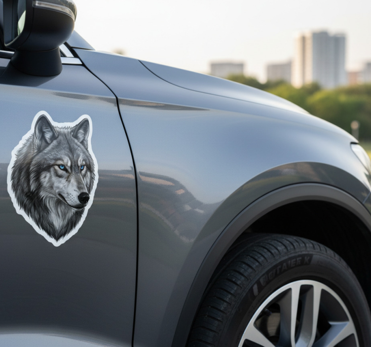 Autosticker wildewolf met blauwe ogen