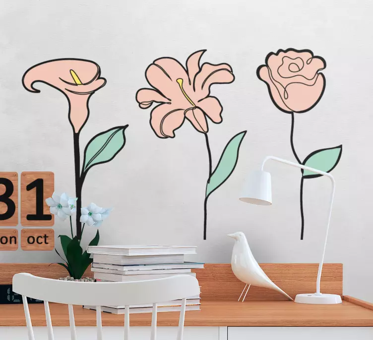 Breng de schoonheid van de natuur in uw huis met onze Bloemen muursticker elegante bloesem compositie. Dit prachtige ontwerp toont een delicate tekening van bloemen in zachte pastelkleuren, waardoor het perfect is voor elke ruimte. De elegante en botanische uitstraling creëert een serene sfeer en laat uw muren stralen met een decoratief accent dat de liefde voor de natuur weerspiegelt.