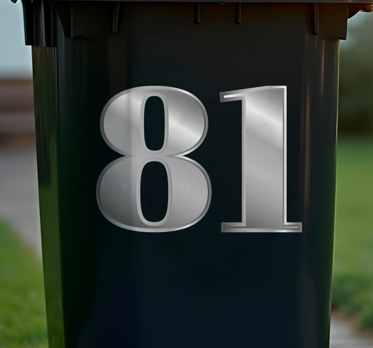 Koop deze containersticker en geniet van alle verschillende elementen die u kunt gebruiken om het uiterlijk van uw vuilnisbakken te veranderen. Dit ontwerp heeft een gedetailleerd aangepast nummer met metallic zilverkleuring en glanseffect. Het is gemakkelijk aan te brengen en laat geen residu achter bij verwijdering. Bovendien is het super eenvoudig om luchtbellen te voorkomen door het simpelweg plat te drukken.