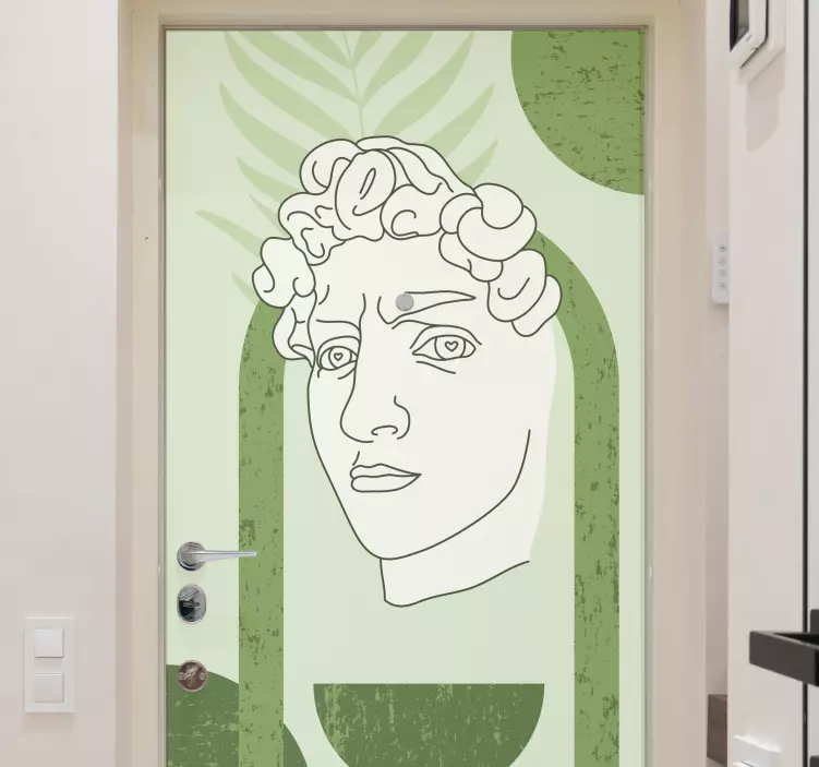 Breng een vleugje moderne kunst in je huis met onze deursticker hedendaagse gezichts kunst. Dit unieke ontwerp, geïnspireerd op het iconische David-standbeeld en het minimalistische beeldhouwwerk, geeft je deur een frisse uitstraling. De combinatie van groene tinten en abstracte vormen creëert een prachtige lijnkunst die perfect past in elk modern interieur. Dit deursticker voegt niet alleen stijl toe, maar creëert ook een uitnodigende sfeer!