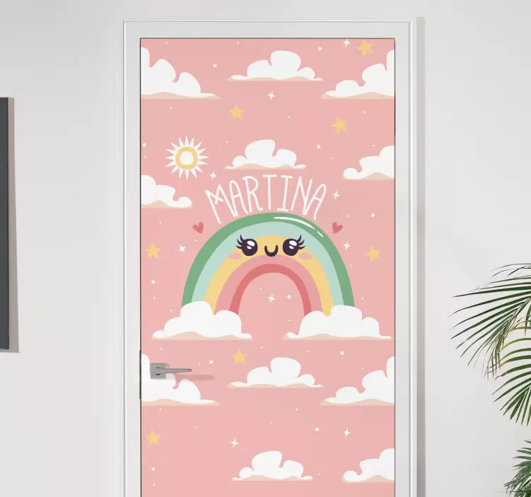 Breng kleur en plezier in je huis met onze Deursticker op maat met regenboogdesign. Deze schattige sticker is perfect voor een deur en bevat vrolijke wolken en een stralende zon. Gepersonaliseer het met een naam en creëer een unieke uitstraling die elke ruimte opvrolijkt. Het ontwerp is niet alleen aantrekkelijk maar ook functioneel, want het biedt een extra laag bescherming tegen krassen en vlekken!