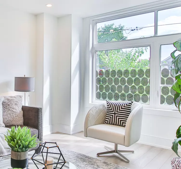 De translucente raamsticker met cirkels kan gemakkelijk op uw raam worden aangebracht. U hoeft alleen de beschermfolie te verwijderen en hem op het raam te plaatsen. Het is belangrijk om het oppervlak van het raam goed schoon te maken voordat u hem aanbrengt. U kunt hem gemakkelijk reinigen met een vochtige doek en een beetje neutrale zeep.