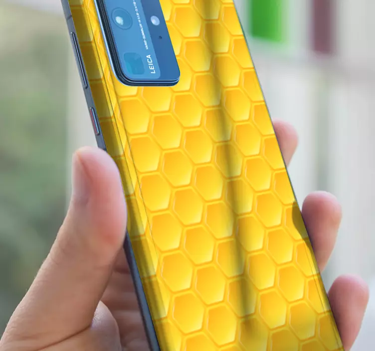Ontdek de prachtige Huawei sticker honingraatindeling, ontworpen met een uniek zeshoekig patroon dat doet denken aan een bijenkorf. Deze sticker, met zijn levendige gele kleur en opvallende textuur, geeft je telefoon een trendy en moderne uitstraling. De zeshoeken in het ontwerp creëren een dynamische look die perfect past bij jouw persoonlijke stijl!