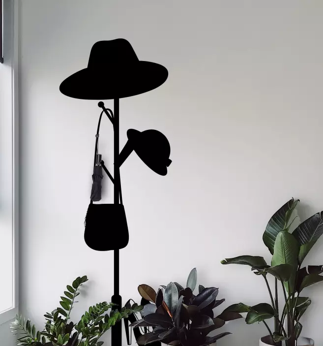 Referentienummer: A51372Deze slanke, moderne hoedrek toont elegante silhouetten van verschillende hoofddeksels en een stijlvolle handtas. Het is ontworpen om je favoriete accessoires te organiseren en tentoon te stellen, waardoor zowel functionaliteit als verfijning aan je ruimte wordt toegevoegd.