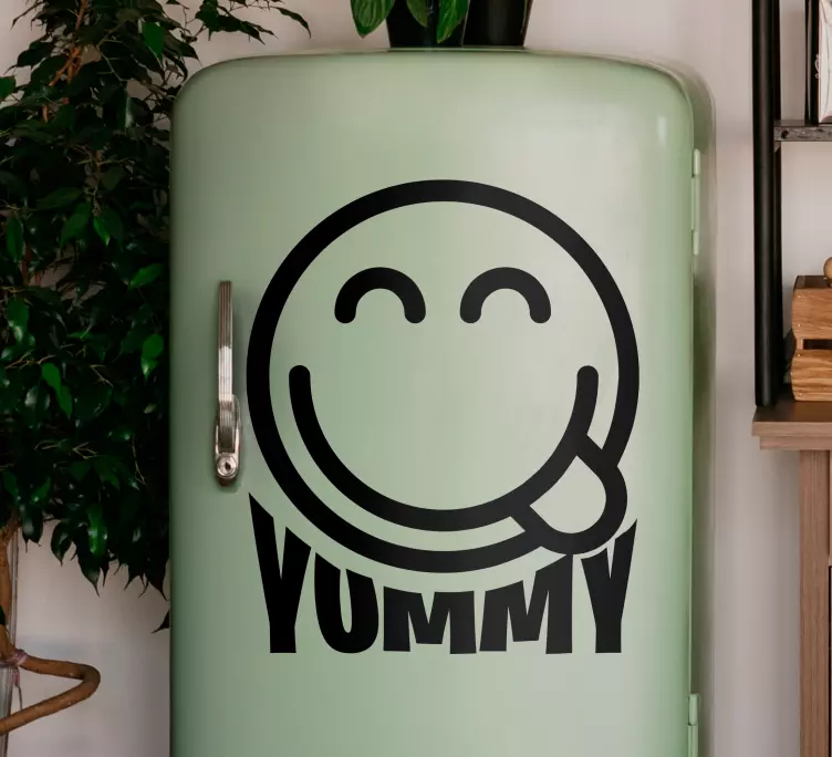 Breng een glimlach op het gezicht van iedereen die je koelkast opent met onze Koelkast sticker blij eten uitdrukking. Dit unieke ontwerp toont een vrolijk gezicht dat uitnodigt tot plezier en lekker eten. Met zijn eigenzinnige en speelse uitstraling voegt deze sticker een vleugje vreugde toe aan elke keuken. Laat het de perfecte aanvulling zijn op jouw keuken, waar voedsel en plezier samenkomen!
