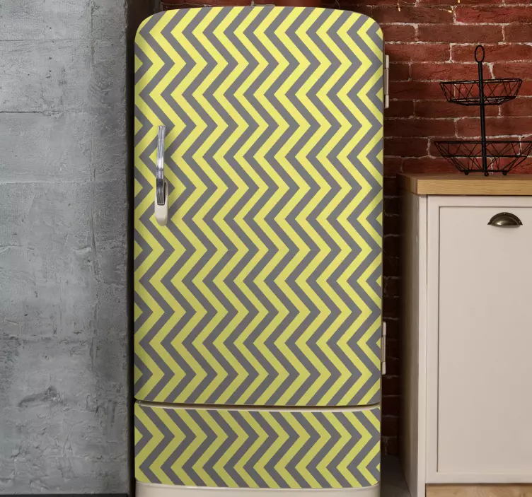 Breng een frisse, moderne uitstraling in uw keuken met onze Koelkast sticker chevron geïnspireerde hoes. Dit prachtige ontwerp met strepen en zigzag patronen in een kleurrijke stijl voegt een speelse touch toe aan uw koelkast. De unieke combinatie van zigzag en patroon maakt het een echte eyecatcher, perfect voor huisdecoratie die niet alleen functioneel is, maar ook esthetisch aantrekkelijk!