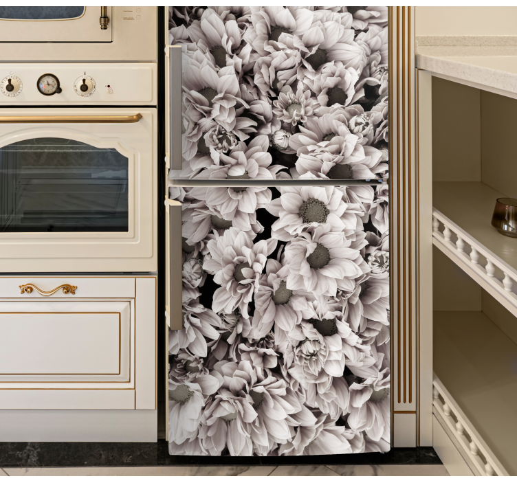 Breng een vleugje elegantie in uw keuken met onze Koelkast sticker elegante bloemenprint. Dit prachtige ontwerp met pioen en pioenrozen laat een realistisch beeld van bloemen zien dat perfect past in elke oven of keuken. De combinatie van zwart en wit maakt het een tijdloos stuk dat de natuur in uw huis brengt.