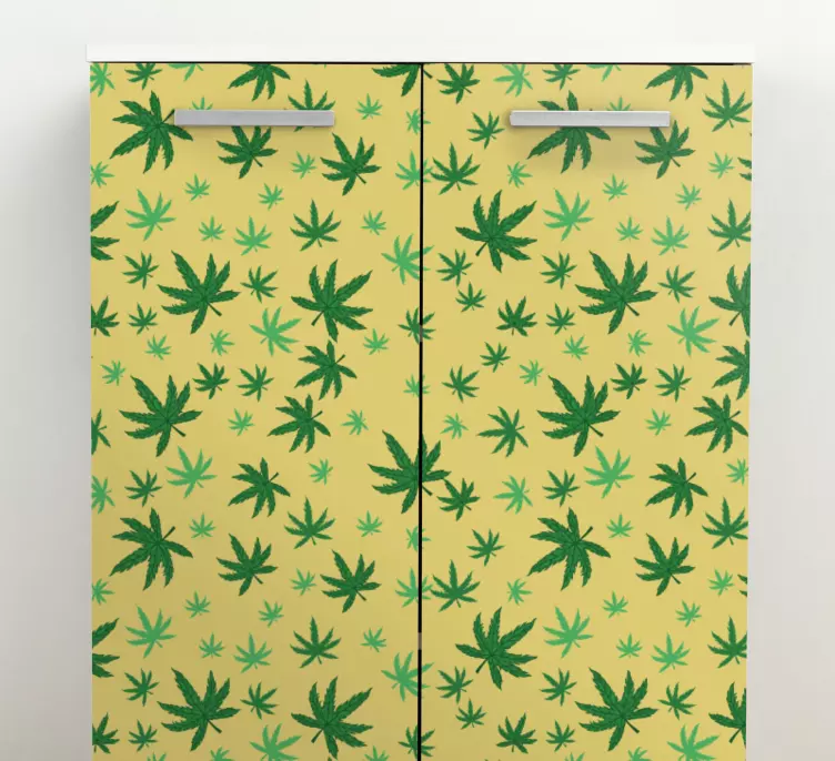 Breng de natuur in uw keuken met onze Koelkast sticker met bladeren patroon oppervlak. Dit prachtige ontwerp is geïnspireerd op tropische bladeren en biedt een botanische uitstraling die uw meubilair op een unieke manier verfraait. De combinatie van groen en hennep maakt het een perfecte aanvulling voor elke moderne ruimte, waardoor uw koelkast een frisse en uitnodigende uitstraling krijgt. Laat de schoonheid van de natuur binnenkomen met dit opvallende patroon!