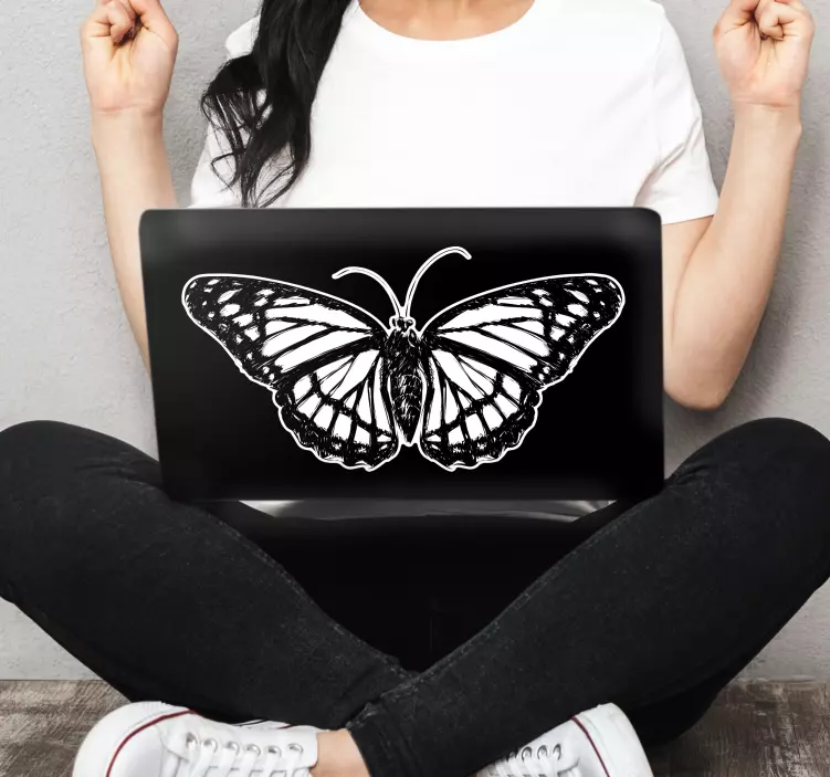 Breng een vleugje natuur en kunst naar je laptop met onze laptop sticker graceful vlinder kunstwerk. Dit prachtige ontwerp toont een monarch vlinder in een elegant zwart en wit kleurenschema dat de schoonheid van de natuur op een artistieke en symbolische manier vastlegt. De monochrome uitstraling voegt een verfijnde touch toe aan ieder apparaat en maakt het tot een opvallend kunstwerk dat je persoonlijke stijl weerspiegelt.