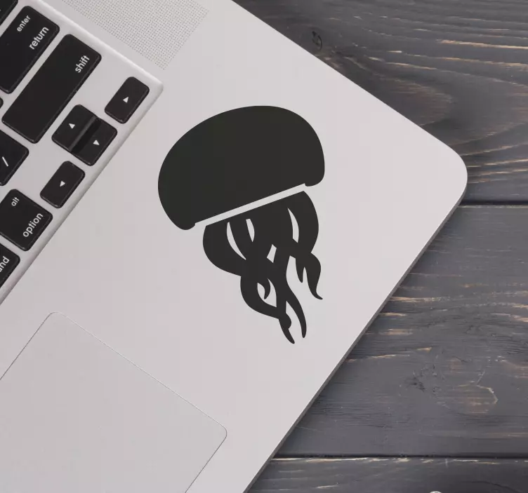 Breng een vleugje maritieme schoonheid in je leven met onze Laptop sticker stijlvolle kwal silhouet. Dit minimalistische ontwerp toont een prachtige illustratie van een kwal, die elegant en subtiel het zeeleven vertegenwoordigt. Het silhouet en de strakke lijnen maken deze sticker perfect voor elke laptop, waardoor je persoonlijkheid en stijl op een unieke manier tot uiting komen.