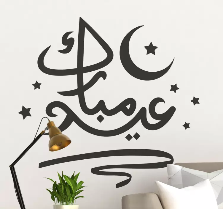 Referentienummer: A52196Een prachtig vormgegeven maansikkel vergezeld van sterren, die viering en festiviteit symboliseert. Dit ontwerp roept een gevoel van vreugde en warmte op, ideaal voor het herdenken van speciale gelegenheden. De elegante kalligrafie voegt een verfijnde touch toe aan de sfeer.