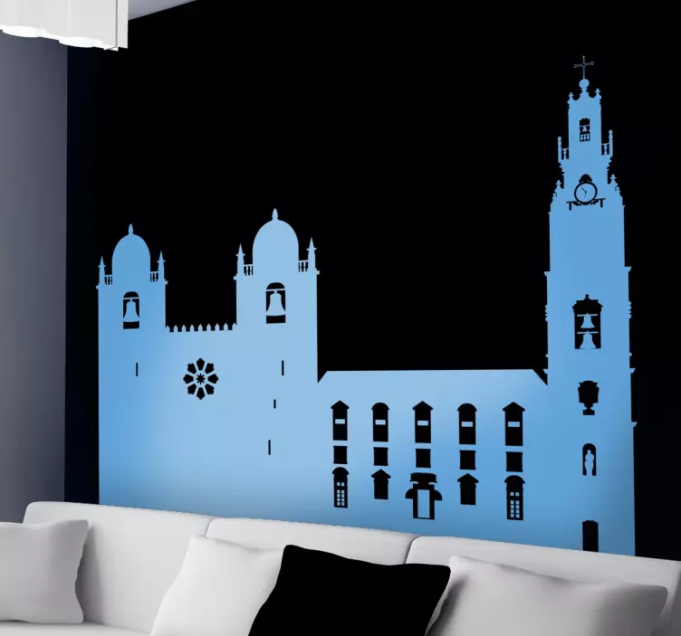 Breng de schoonheid van historische architectuur in uw huis met onze unieke Locatie sticker historische gebouw silhouet. Dit prachtig ontworpen silhouet van een kathedraal in Portugal vangt de essentie van een majestueuze stad en zijn iconische mijlpalen. De strakke lijnen en gedetailleerde structuur van het ontwerp maken het een visueel hoogtepunt dat elke ruimte kan transformeren!