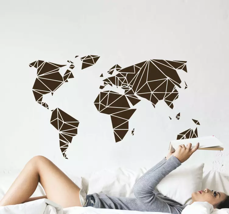 Ontdek de prachtige Locatie sticker hoekige wereldkaart, een uniek ontwerp dat de schoonheid van de wereld op een geometrische en abstracte manier vastlegt. Dit moderne en minimalistische kunstwerk combineert de finesse van origami met de intrigerende lijnen van een wereldkaart, waardoor het een perfecte aanvulling is voor elke ruimte. Laat je inspireren door de levendige kleuren en het stijlvolle ontwerp dat elke muur kan transformeren in een visueel spektakel!