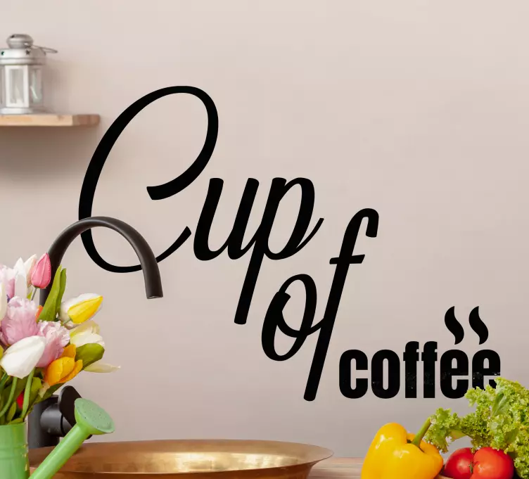 Breng een unieke sfeer in uw keuken met onze Locatie sticker koffie quote decoratie. Dit prachtige ontwerp bevat een inspirerende tekst, een koffiebol die perfect past in elke cafe of huiskamer. De spreuken zijn subtiel en creëren een warme ambiance, waardoor elke koffiemoment bijzonder wordt. Deze sticker is een geweldige manier om uw liefde voor koffie visueel te uiten!