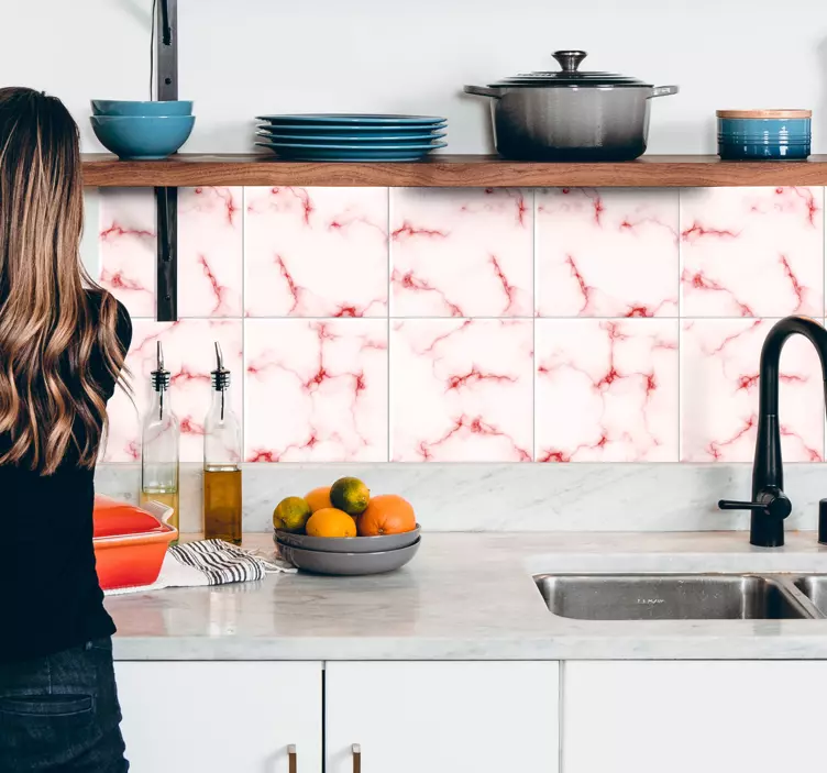 Tegelstickers keuken marmer roze