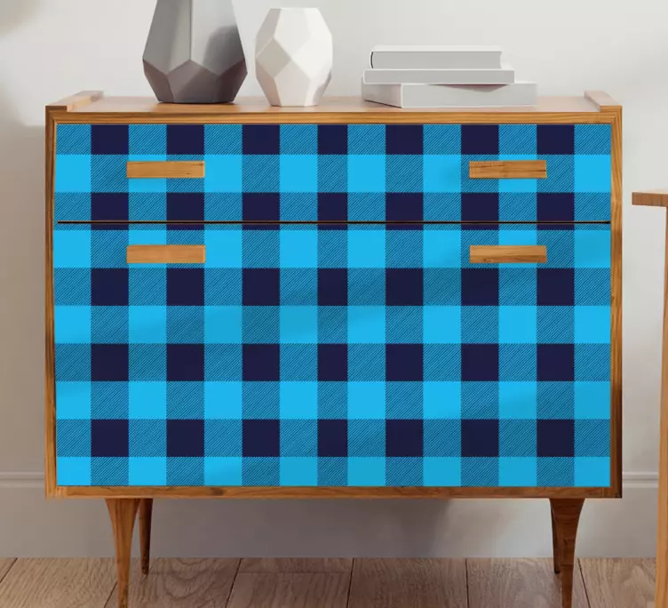 Breng een frisse en levendige uitstraling in uw interieur met onze Meubel sticker blauw geruit ontwerp. Dit prachtige ontwerp bevat een geometrisch tartanpatroon in een schitterende blauwe tint, perfect voor het transformeren van uw meubilair in een stijlvol statement. De plaid look voegt een speelse en warme sfeer toe die elke ruimte verlevendigt!