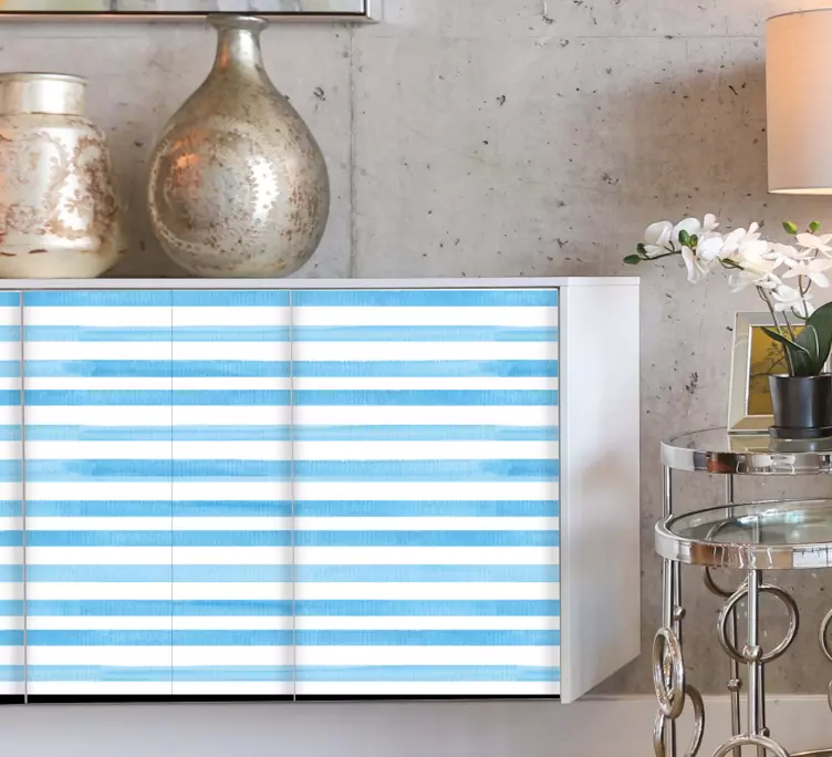 De Meubel sticker blauw gestreept motief meubel sticker is de ideale keuze voor iedereen die zijn of haar interieur wil vernieuwen zonder ingrijpende verbouwingen. Dit product biedt een snelle en eenvoudige manier om een persoonlijke touch aan uw meubels te geven, waardoor ze weer als nieuw aanvoelen. Met zijn frisse en levendige uitstraling geeft deze sticker uw ruimte een modern gevoel, perfect voor elk type interieur. Laat de creativiteit de vrije loop en transformeer uw meubels in ware blikvangers!
