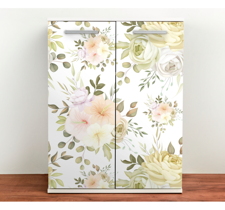 Breng de natuur in uw huis met onze Meubel sticker bloemenpatroon container. Dit prachtige ontwerp is een ware botanische illustratie vol met kleurrijke bloemen en zachte kleuren die elke ruimte een frisse uitstraling geven. De combinatie van een bloemenpatroon en de natuurlijke elementen zorgt voor een uitnodigende sfeer, perfect voor elke decoratiebehoefte.