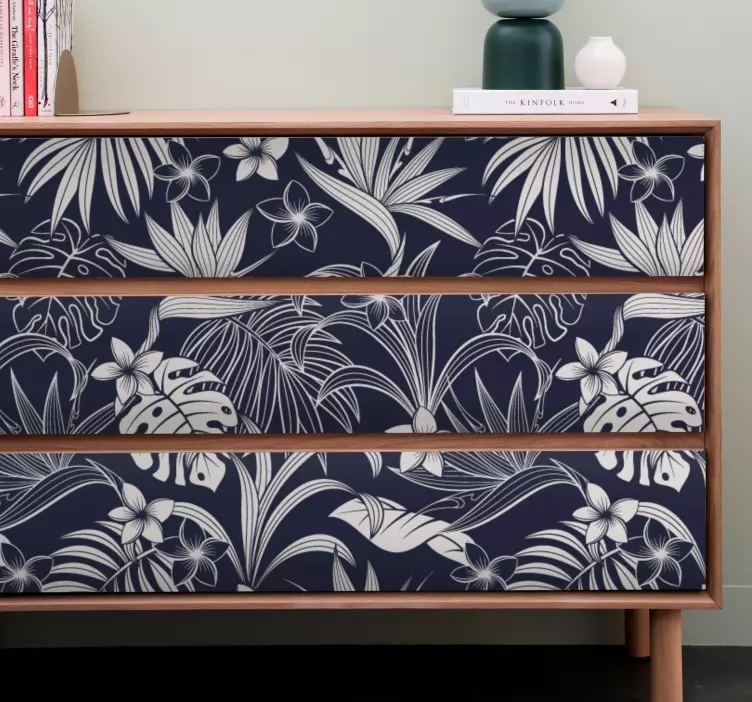 Breng een vleugje natuur in uw interieur met onze Meubel sticker botanisch patroon ontwerp. Dit unieke ontwerp is geïnspireerd op de schoonheid van bladeren en bloemen en voegt een tropische flair toe aan elk meubelstuk. Het moderne patroon weerspiegelt de rust van de natuur en transformeert uw ruimte in een oase van stijl en elegantie. Laat uw meubilair stralen met dit prachtige botanische ontwerp!