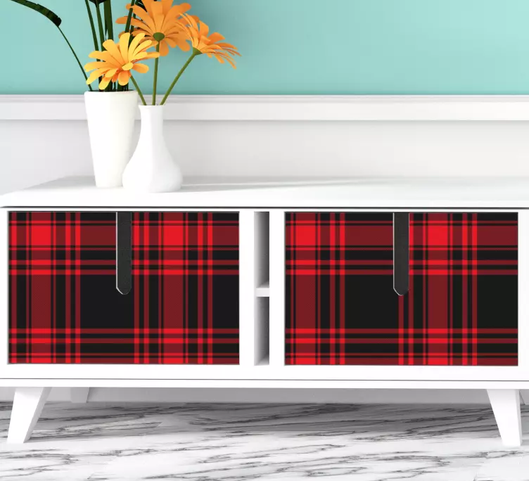 Breng een unieke uitstraling in uw huis met onze meubel sticker gecontroleerde textuur oppervlakte. Dit ontwerp is geïnspireerd op een prachtig tartanpatroon in een rijke rode en zwarte kleurstelling, die perfect past bij elk meubelstuk. De stofachtige afwerking voegt een warm gevoel toe aan uw interieur, waardoor het een ideale keuze is voor elke kamer in uw huis. Laat uw meubels stralen met deze prachtige plaid die niet alleen visueel aantrekkelijk is maar ook een luxe uitstraling biedt!