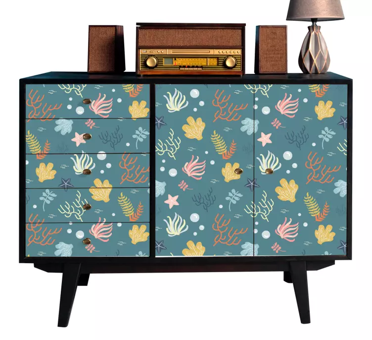 De Meubel sticker koraalrif motief meubel sticker is een geweldige keuze voor iedereen die zijn of haar leefruimte wil verfraaien. Dit unieke ontwerp brengt niet alleen kleur en leven in je interieur, maar het is ook een bron van inspiratie en creativiteit. Met een eenvoudig aan te brengen sticker transformeer je je meubels in een artistiek statement. Waarom zou je kiezen voor een saaie inrichting als je de oceaan in je huis kunt halen? Deze sticker is perfect voor het creëren van een ontspannen en vrolijke sfeer!