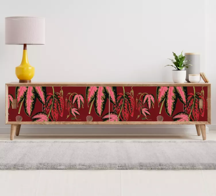 Breng een vleugje natuur in uw interieur met onze Meubel sticker lush leaf motief. Dit prachtige ontwerp is geïnspireerd door de maranta plant en biedt een levendig patroon van bloemen en bladeren in natuurlijke kleuren zoals rood, groen en roze. Het is een perfecte manier om uw meubilair te transformeren en een frisse, floraal uitstraling te geven aan uw ruimte!